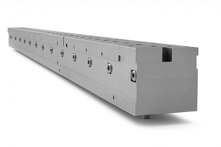 Crowning table with manual crowning with indipendent wedges in C45 hardened and ground. Pneumatic or hydraulic clamping for R2-R3-R4-R5 dies. Max.Load 2500 kN/m.